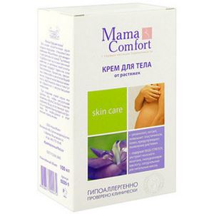 - «Mama Comfort» является тем средством, которое разработано для беременных женщин и тех, у которых лактация. В состав входят компоненты, которые предназначены для особенно чувствительной кожи. Это помогает избежать аллергических реакций, раздражения. После родов это средство станет действительно находкой. Его главная особенность – повышение эластичности кожных покровов. Стоимость крема этой линейки составляет 300 рублей. Гиалуроновая кислота контролирует водно – солевой баланс на кожных покровов. Стимулятором кровообращения в этом случае выступает экстракт конского каштана. Доказано, что экстракты масел насыщают кожу жирными кислотами, а специальный инновационный комплекс корректирует способность кожных покровов к растяжкам.