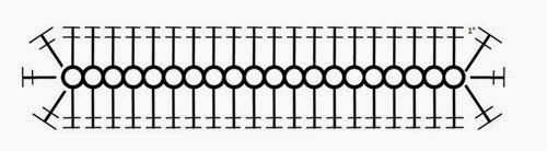 В первом ряду провязать 74 воздушные петли и одну петлю подъема. Во втором сделать столбики без накида.
